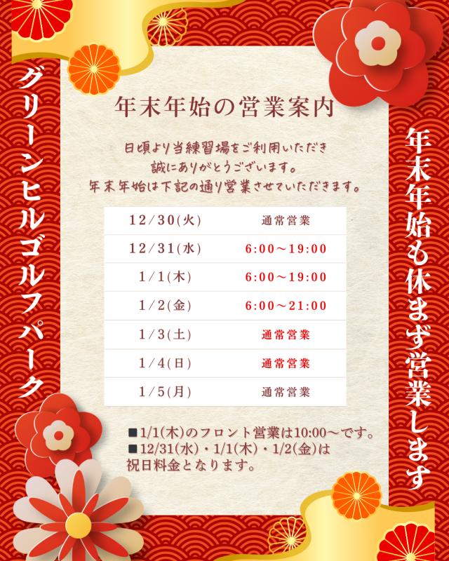 いつもグリーンヒルゴルフパークをご利用頂きまして誠にありがとうございます⛳️ 岡本インストラクターの年末年始のレッスンスケジュールのご案内をさせて頂きます。 休講日はスクール及び個人レッスンはお休みさせて頂きます。 よろしくお願いいたします🙇 |